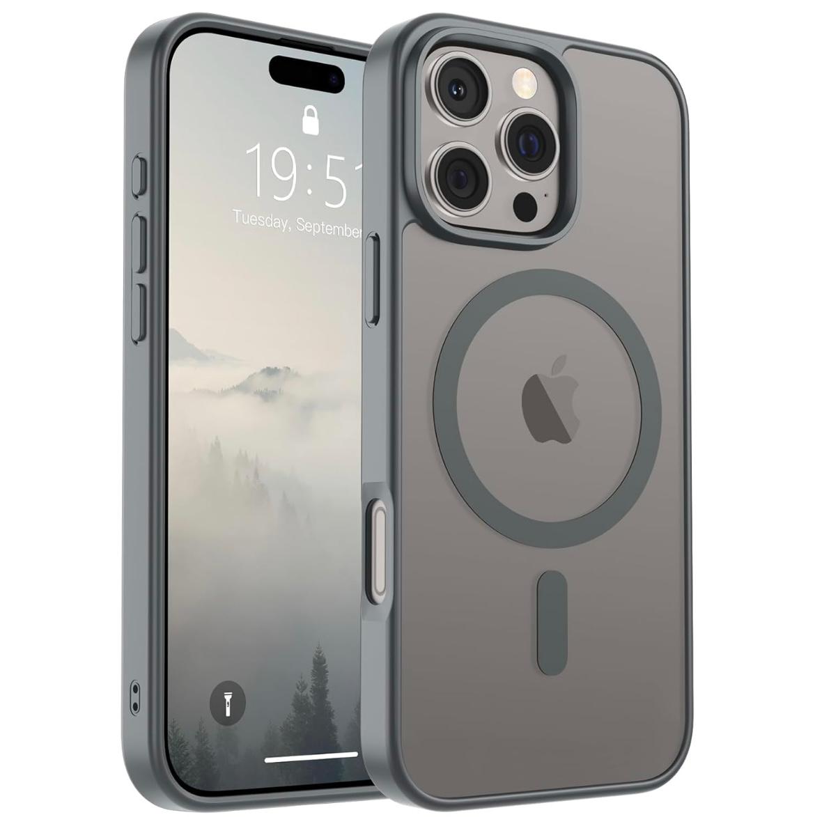 Brandson for iPhone 16/ 16 Pro/ 16 Pro Max Case (Compatible with MagSafe) (10 FT Military Grade Drop Protection) Slim Translucent Matte Shockproof with Anti-Fingerprint Phone Case, Gray, Black & Antique White