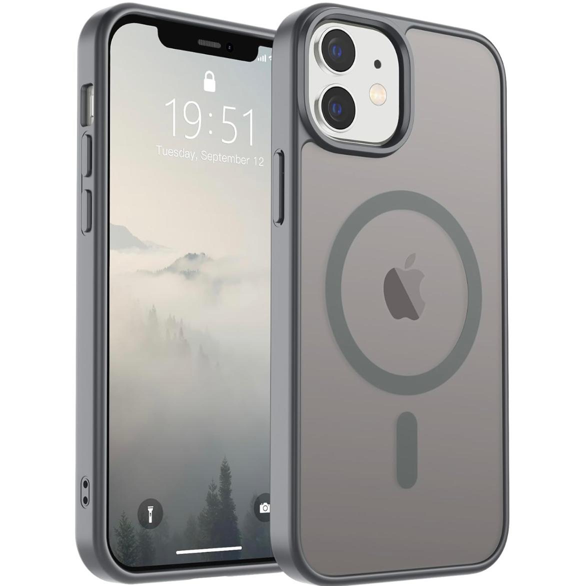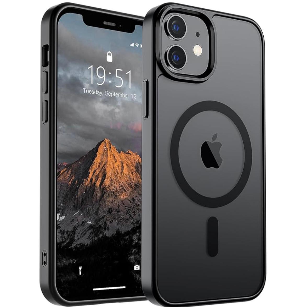 Brandsonusa for iPhone 12 Case/iPhone 12 Pro Case (Compatible with MagSafe)(Military Grade Drop Protection) Slim Translucent Matte Shockproof with Anti-Fingerprint Phone Case,Black