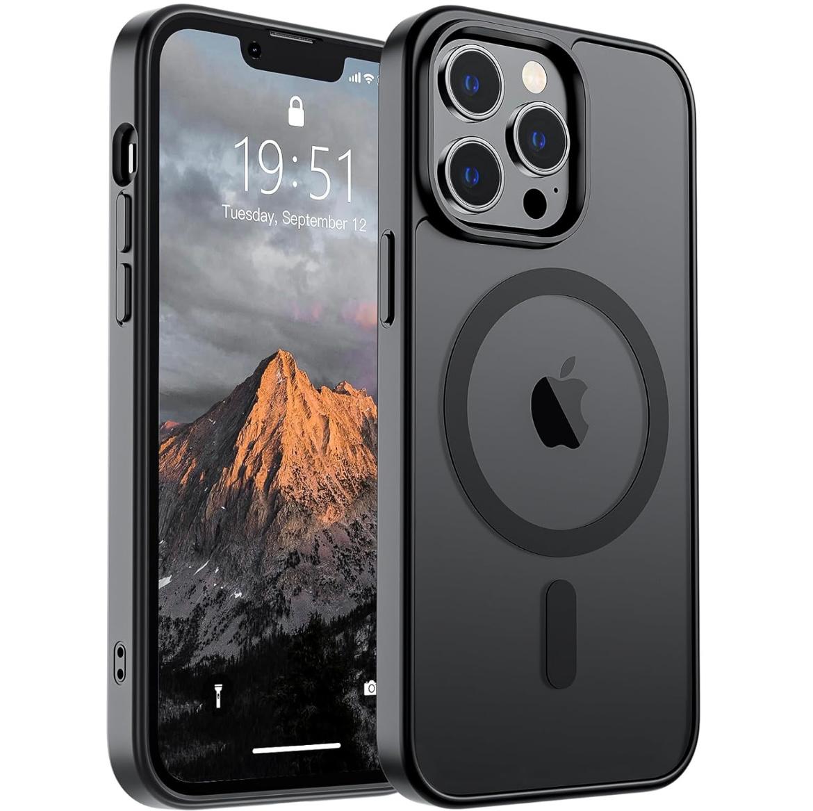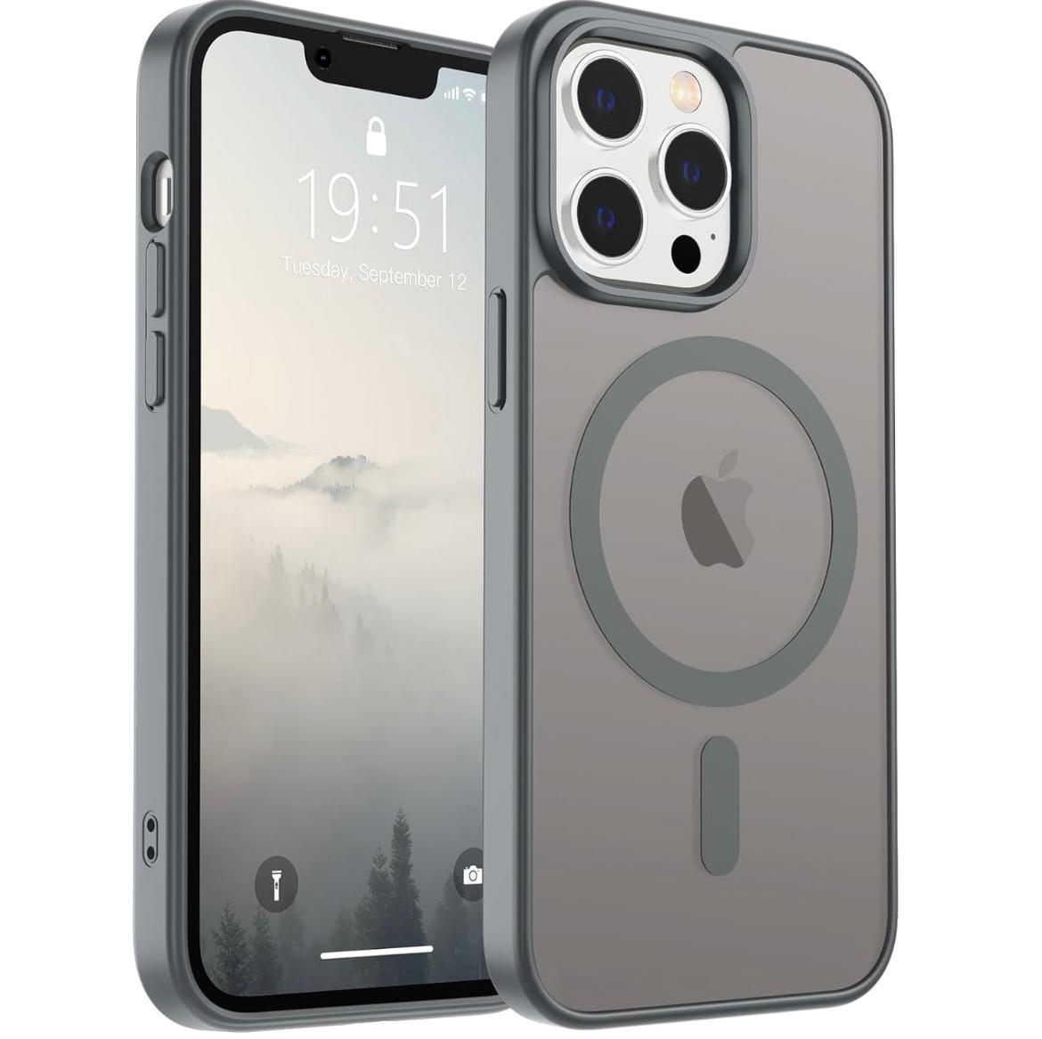 Brandson for iPhone 13 Pro Max Case (Compatible with MagSafe) (Military Grade Drop Protection) Slim Translucent Matte Shockproof with Anti-Fingerprint Phone Case,Black,grey and antique white