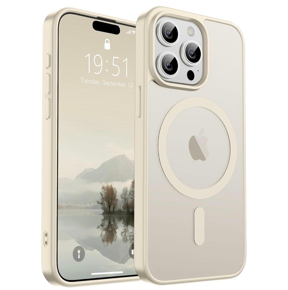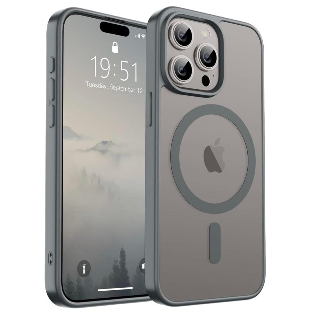 Brandson for iPhone 15/ iphone 15 Pro/ iPhone 15 Pro Max Case(Compatible with MagSafe)(Military Grade Drop Protection) Slim Translucent Matte Shockproof Women Men Girl Phone Cover,Gray,Antique white and Black